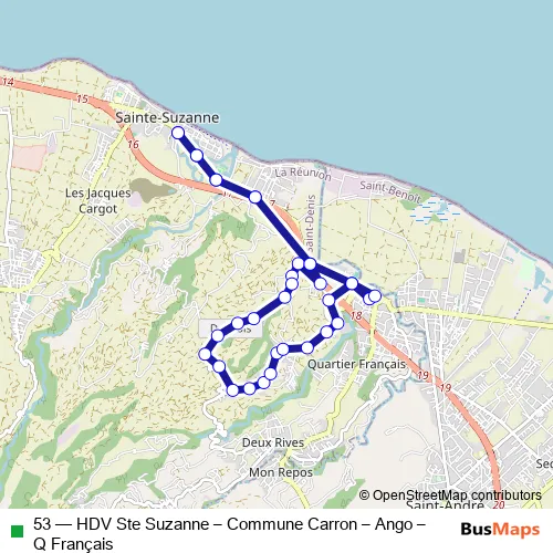 53 (HDV Ste Suzanne – Commune Carron – Ango – Q Français) Bus in Saint-Denis