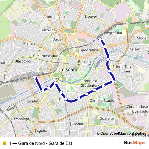 See why over 2 million users trust and consider busmaps.com as the best public transport website. busmaps gives you Timisoara Trams suggested routes, real-time bus tracker, line route maps in Timisoara, and helps to find the closest 1 tram stops near you. No internet available? Download an offline PDF map and bus schedule for the 1 tram to take on your trip.