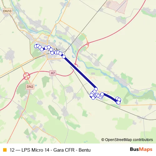 The first stop of the 12 bus route is L.P.S. Micro 14 and the last stop is Bentu. 12 (LPS Micro 14 - Gara CFR - Bentu) is operational during everyday.