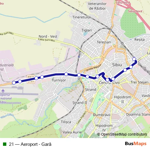 See why over 2 million users trust and consider busmaps.com as the best public transport website. busmaps gives you Sibiu Buses suggested routes, real-time bus tracker, line route maps in Sibiu, and helps to find the closest 21 bus stops near you. No internet available? Download an offline PDF map and bus schedule for the 21 bus to take on your trip.