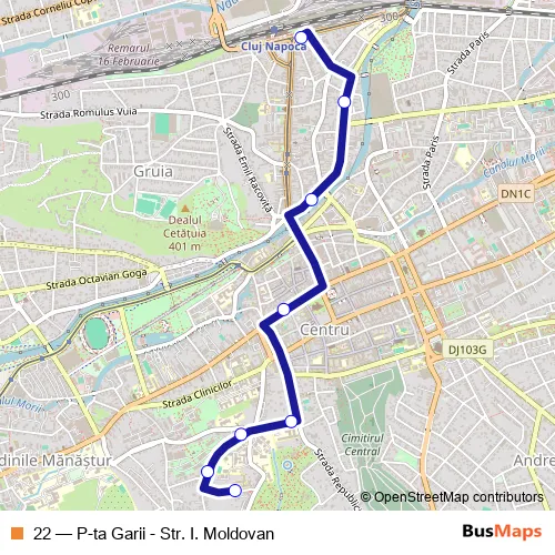 See why over 2 million users trust and consider busmaps.com as the best public transport website. busmaps gives you Cluj-Napoca Buses suggested routes, real-time bus tracker, line route maps in Cluj-Napoca, and helps to find the closest 22 bus stops near you. No internet available? Download an offline PDF map and bus schedule for the 22 bus to take on your trip.
