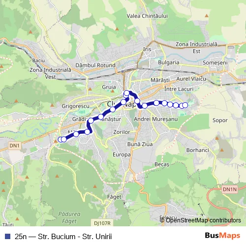 See why over 2 million users trust and consider busmaps.com as the best public transport website. busmaps gives you Cluj-Napoca Trolleybuses suggested routes, real-time bus tracker, line route maps in Cluj-Napoca, and helps to find the closest 25n trolleybus stops near you. No internet available? Download an offline PDF map and bus schedule for the 25n trolleybus to take on your trip.