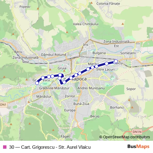 See why over 2 million users trust and consider busmaps.com as the best public transport website. busmaps gives you Cluj-Napoca Buses suggested routes, real-time bus tracker, line route maps in Cluj-Napoca, and helps to find the closest 30 bus stops near you. No internet available? Download an offline PDF map and bus schedule for the 30 bus to take on your trip.