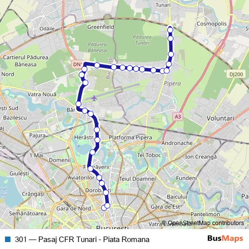 See why over 2 million users trust and consider busmaps.com as the best public transport website. busmaps gives you Bucharest Buses suggested routes, real-time bus tracker, line route maps in Bucharest, and helps to find the closest 301 bus stops near you. No internet available? Download an offline PDF map and bus schedule for the 301 bus to take on your trip.