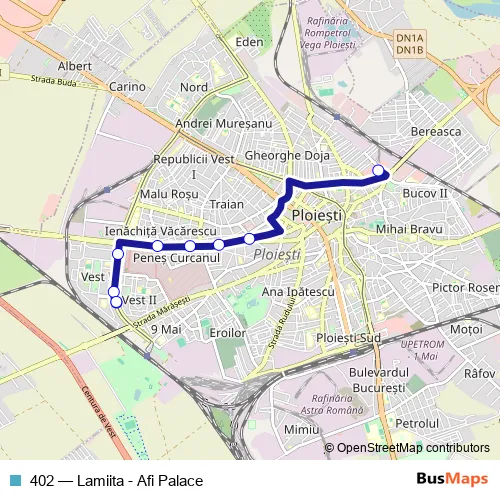 See why over 2 million users trust and consider busmaps.com as the best public transport website. busmaps gives you Ploiesti Buses suggested routes, real-time bus tracker, line route maps in Ploiesti, and helps to find the closest 402 bus stops near you. No internet available? Download an offline PDF map and bus schedule for the 402 bus to take on your trip.