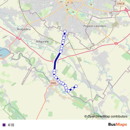 The first stop of the 418 bus route is C.f.r. Progresul and the last stop is Copaceni. 418 is operational during everyday.