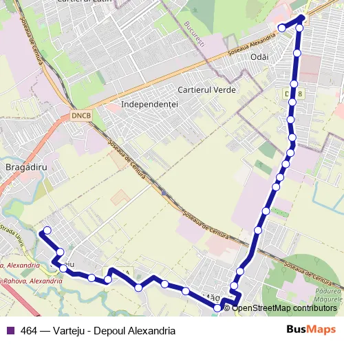 The first stop of the 464 bus route is Varteju and the last stop is Depoul Alexandria. 464 (Varteju - Depoul Alexandria) is operational during everyday.
