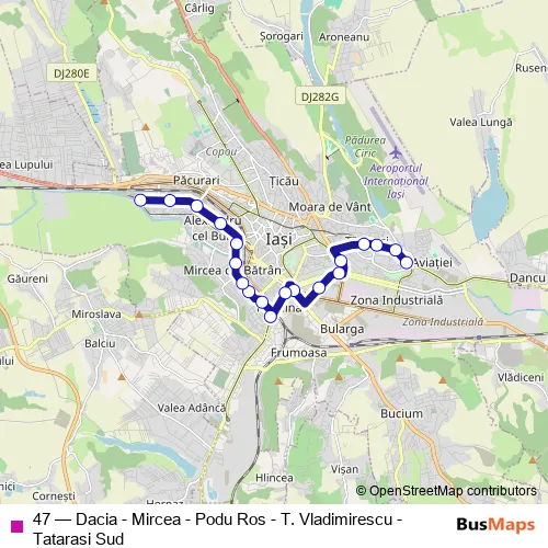Bus 47 - Dacia - Mircea - Podu Ros - T. Vladimirescu - Tatarasi Sud Schedule in Iasi