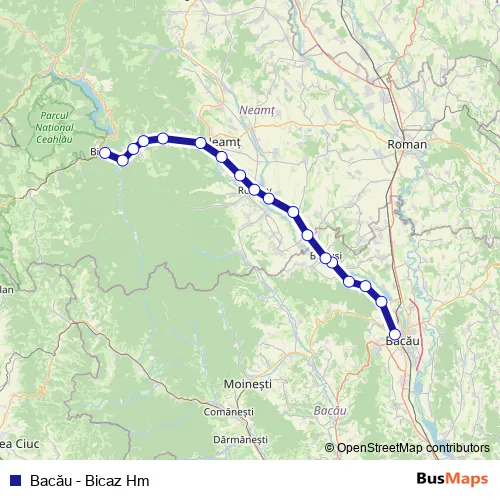 Additional information: Bacău - Bicaz Hm has 18 stops and the total trip duration
