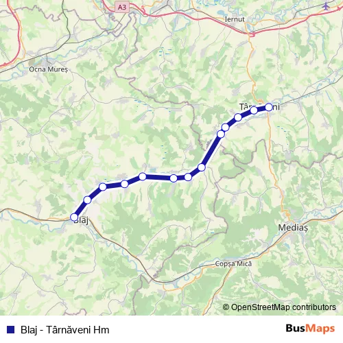 Târnăveni Hm.. Blaj - Târnăveni Hm (Blaj - Târnăveni Hm) is operational during everyday.