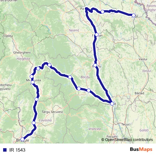 The first stop of the IR 1543 rail route is Braşov and the last stop is Iaşi. IR 1543 is operational during everyday.