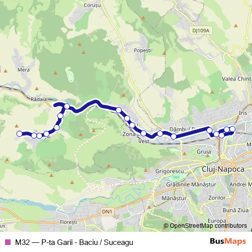 See why over 2 million users trust and consider busmaps.com as the best public transport website. busmaps gives you Baciu Buses suggested routes, real-time bus tracker, line route maps in Baciu, and helps to find the closest M32 bus stops near you. No internet available? Download an offline PDF map and bus schedule for the M32 bus to take on your trip.