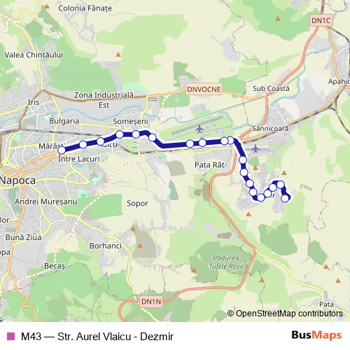 See why over 2 million users trust and consider busmaps.com as the best public transport website. busmaps gives you Cluj-Napoca Buses suggested routes, real-time bus tracker, line route maps in Cluj-Napoca, and helps to find the closest M43 bus stops near you. No internet available? Download an offline PDF map and bus schedule for the M43 bus to take on your trip.
