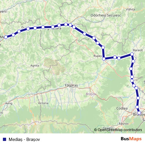 The first stop of the Mediaş - Braşov rail route is Mediaş and the last stop is Braşov. Mediaş - Braşov (Mediaş - Braşov) is operational during everyday.