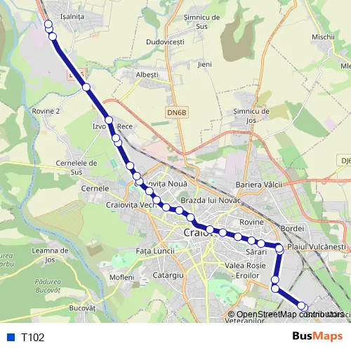 See why over 2 million users trust and consider busmaps.com as the best public transport website. busmaps gives you Craiova Trams suggested routes, real-time bus tracker, line route maps in Craiova, and helps to find the closest T102 tram stops near you. No internet available? Download an offline PDF map and bus schedule for the T102 tram to take on your trip.
