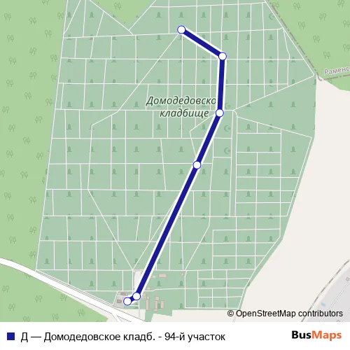 Click here to view the nearest Д - Домодедовское кладб. - 94-й участок bus stop.