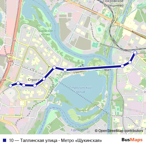 The first stop of the 10 tram route is Метро «Щукинская» and the last stop is Таллинская улица. 10 (Таллинская улица - Метро «Щукинская») is operational during everyday.
