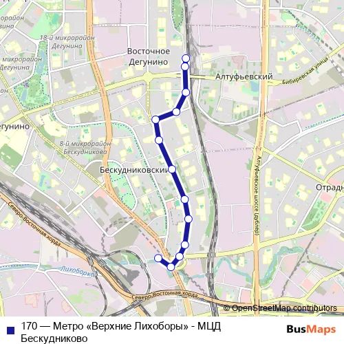 Bus 170 - Метро «Верхние Лихоборы» - МЦД Бескудниково Schedule in Vostochnoe Degunino