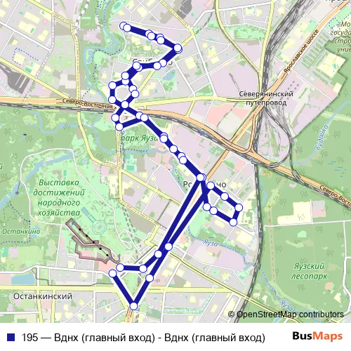 Click here to view the nearest 195 - Вднх (главный вход) - Вднх (главный вход) bus stop.
