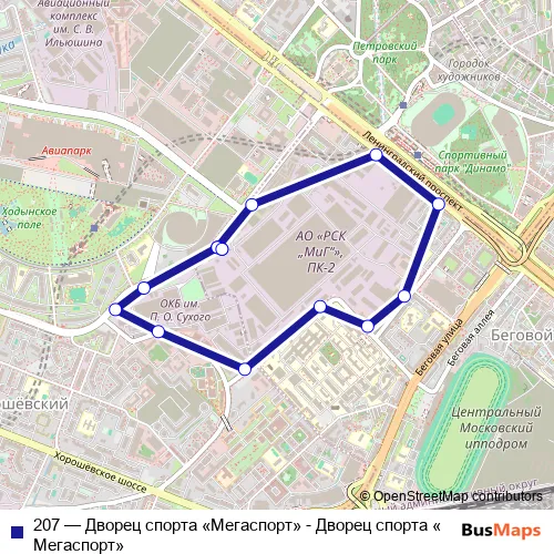 See why over 2 million users trust and consider busmaps.com as the best public transport website. busmaps gives you Moscow Buses suggested routes, real-time bus tracker, line route maps in Moscow, and helps to find the closest 207 bus stops near you. No internet available? Download an offline PDF map and bus schedule for the 207 bus to take on your trip.