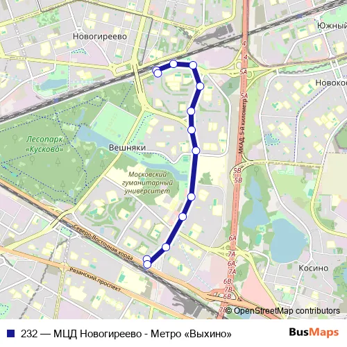 232 Bus - МЦД Новогиреево - Метро «Выхино»