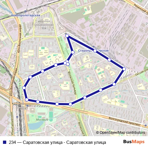 Bus 234 - Саратовская улица - Саратовская улица: Full Schedule in Moscow