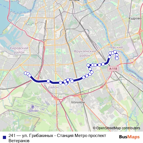 Bus 241 - ул. Грибакиных - Станция Метро проспект Ветеранов: Full Schedule in Saint Petersburg