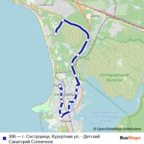 Bus 306 - г. Сестрорецк, Курортная ул. - Детский Санаторий Солнечное: Full Schedule in Sestroretsk
