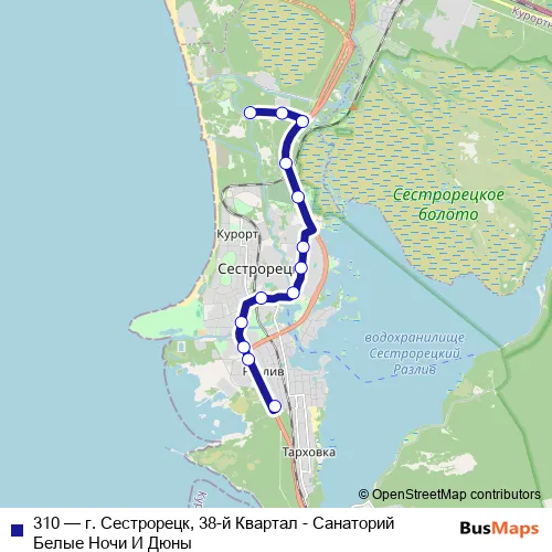 Bus 310 - г. Сестрорецк, 38-й Квартал - Санаторий Белые Ночи И Дюны: Full Schedule in Sestroretsk