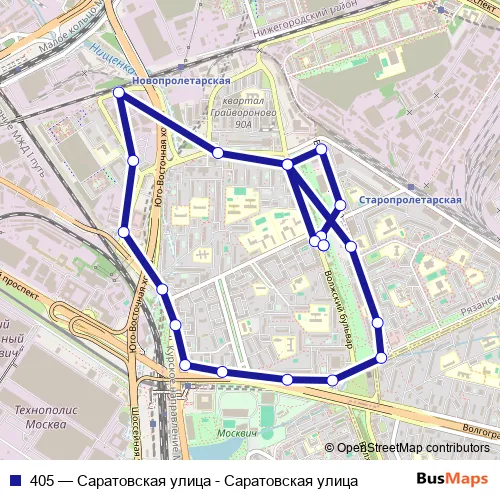 Bus 405 - Саратовская улица - Саратовская улица in Moscow: Stops & Timetable