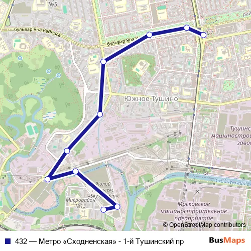 Click here to view the nearest 432 - Метро «Сходненская» - 1-й Тушинский пр bus stop.
