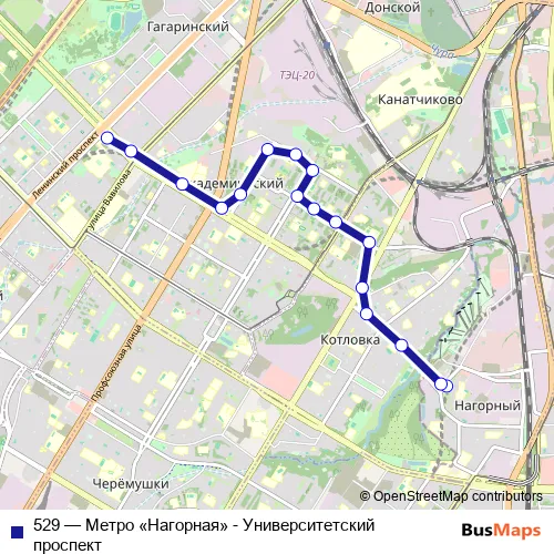 Bus 529 - Метро «Нагорная» - Университетский проспект: Full Schedule in Moscow