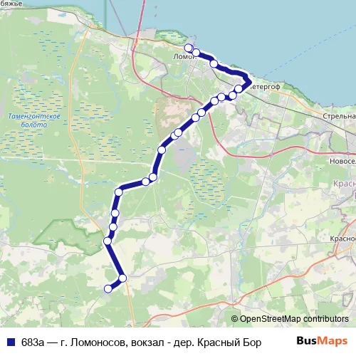 Click here to view the nearest 683а - г. Ломоносов, вокзал - дер. Красный Бор bus stop.
