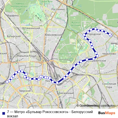 Click here to view the nearest 7 - Метро «Бульвар Рокоссовского» - Белорусский вокзал tram stop.