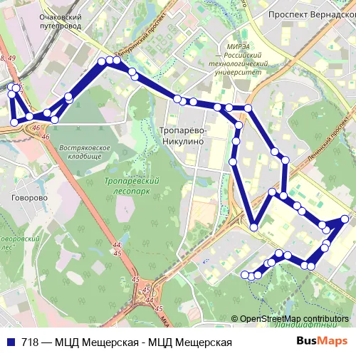 See why over 2 million users trust and consider busmaps.com as the best public transport website. busmaps gives you Moscow Buses suggested routes, real-time bus tracker, line route maps in Moscow, and helps to find the closest 718 bus stops near you. No internet available? Download an offline PDF map and bus schedule for the 718 bus to take on your trip.