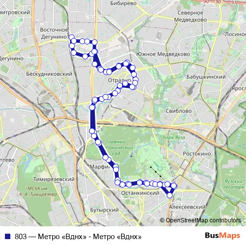 803 Bus - Метро «Вднх» - Метро «Вднх»