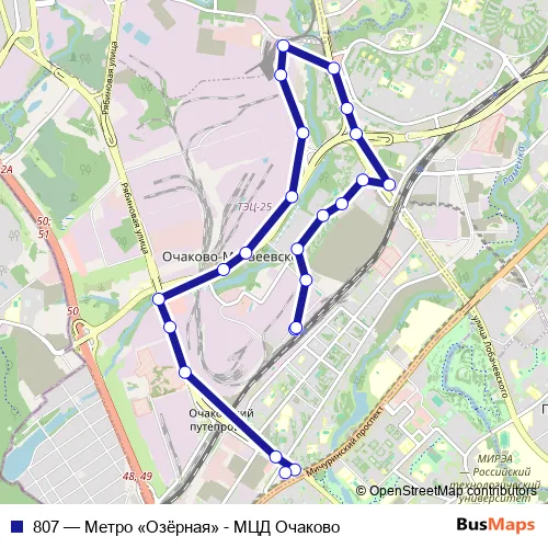 Bus 807 - Метро «Озёрная» - МЦД Очаково in Moscow: Stops & Timetable