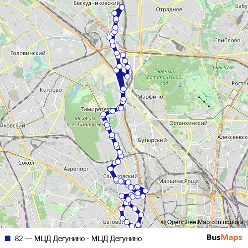 Bus 82 - МЦД Дегунино - МЦД Дегунино in Moscow: Stops & Timetable