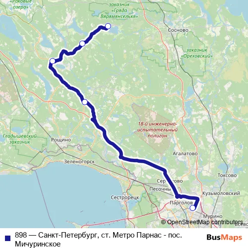 Click here to view the nearest 898 - Санкт-Петербург, ст. Метро Парнас - пос. Мичуринское bus stop.