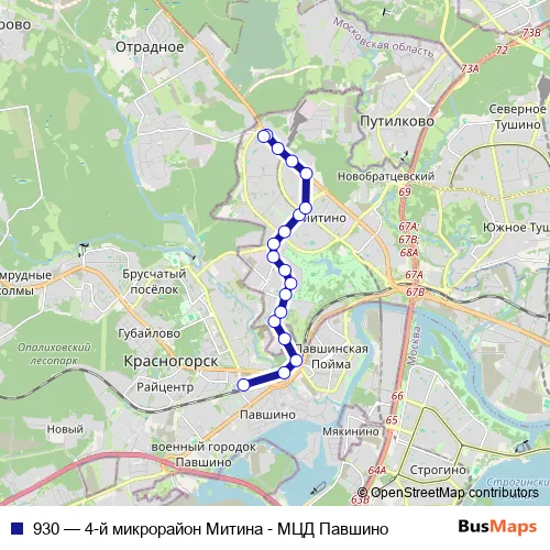 Bus 930 - 4-й микрорайон Митина - МЦД Павшино: Full Schedule in Krasnogorsk