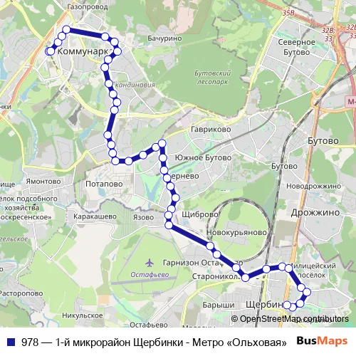 978 Bus - 1-й микрорайон Щербинки - Метро «Ольховая»