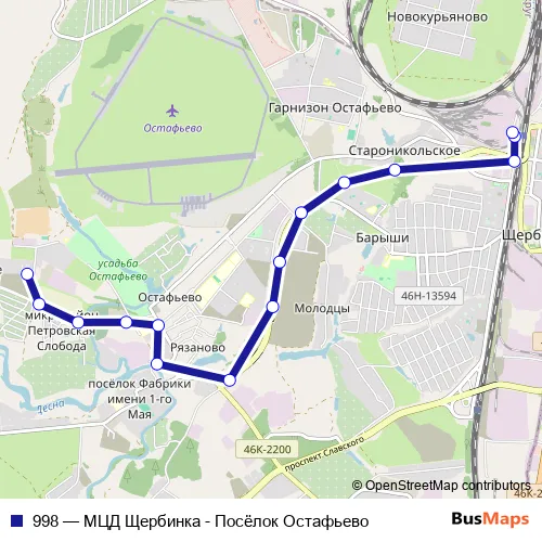 Bus 998 - МЦД Щербинка - Посёлок Остафьево Schedule in Vidnoye