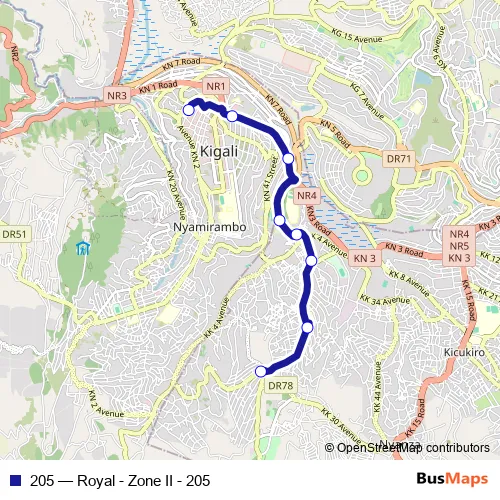 See why over 2 million users trust and consider busmaps.com as the best public transport website. busmaps gives you Kigali Buses suggested routes, real-time bus tracker, line route maps in Kigali, and helps to find the closest 205 bus stops near you. No internet available? Download an offline PDF map and bus schedule for the 205 bus to take on your trip.