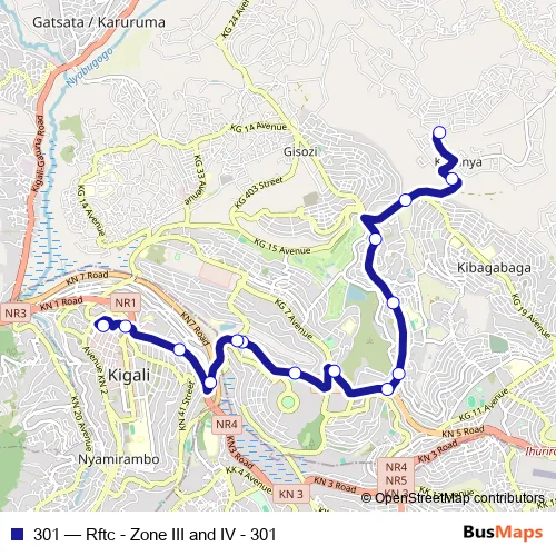 Bus 301 - Rftc - Zone III and IV - 301 in Kigali: Stops & Timetable