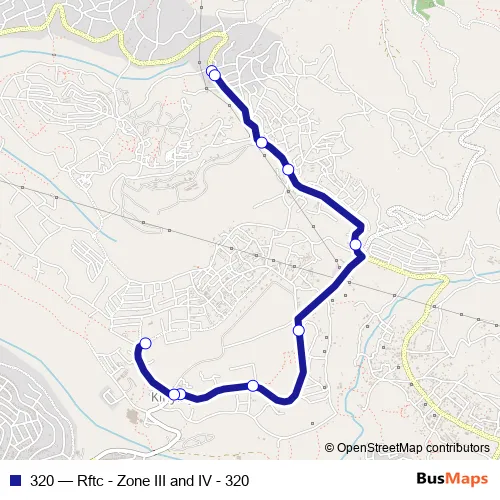 The first stop of the 320 bus route is Kinyinya and the last stop is Kami. 320 (Rftc - Zone III and IV - 320) is operational during everyday.