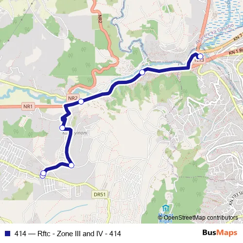 See why over 2 million users trust and consider busmaps.com as the best public transport website. busmaps gives you Kigali Buses suggested routes, real-time bus tracker, line route maps in Kigali, and helps to find the closest 414 bus stops near you. No internet available? Download an offline PDF map and bus schedule for the 414 bus to take on your trip.