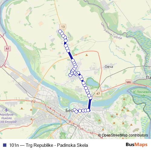 See why over 2 million users trust and consider busmaps.com as the best public transport website. busmaps gives you Belgrade Buses suggested routes, real-time bus tracker, line route maps in Belgrade, and helps to find the closest 101n bus stops near you. No internet available? Download an offline PDF map and bus schedule for the 101n bus to take on your trip.