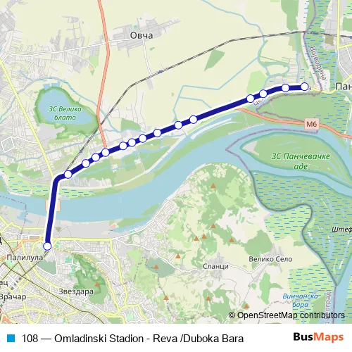 The first stop of the 108 bus route is Reva /Duboka bara and the last stop is Omladinski stadion/izlaz. 108 (Omladinski Stadion - Reva /Duboka Bara) is operational during everyday.