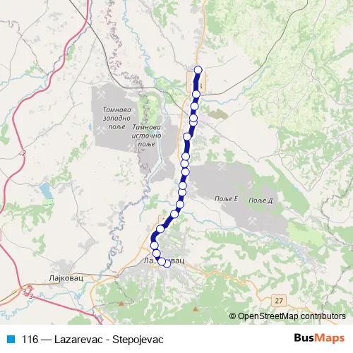 Click here to view the nearest 116 - Lazarevac - Stepojevac bus stop.