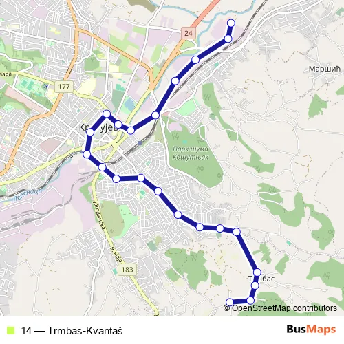 See why over 2 million users trust and consider busmaps.com as the best public transport website. busmaps gives you Kragujevac Buses suggested routes, real-time bus tracker, line route maps in Kragujevac, and helps to find the closest 14 bus stops near you. No internet available? Download an offline PDF map and bus schedule for the 14 bus to take on your trip.